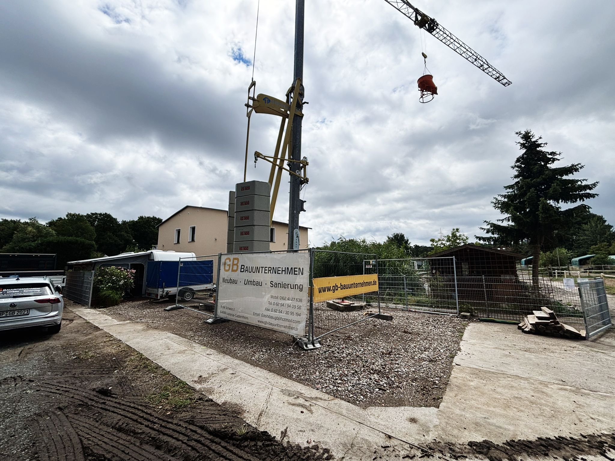Auf dem Bild sehen Sie den Beginn eines unserer erfolgreichen Projekte: den Bau einer Lagerhalle mit integriertem Büro. Der erste Schritt ist die fachgerechte Errichtung des Fundaments, das die Basis für die gesamte Konstruktion bildet. Mit Präzision und Sorgfalt legen wir hier den Grundstein für ein funktionales und ästhetisch ansprechendes Gebäude, das den individuellen Anforderungen unserer Kunden gerecht wird.