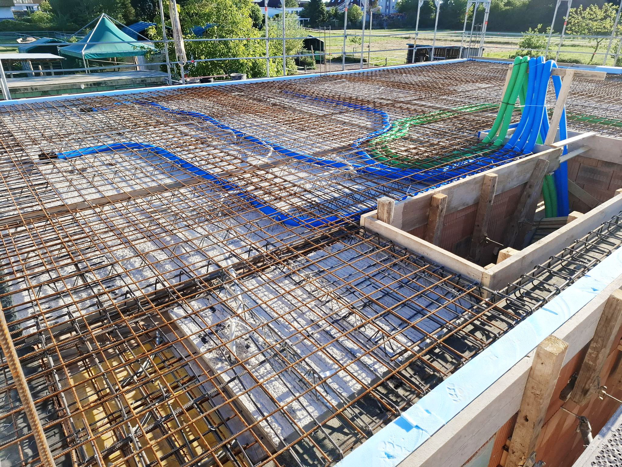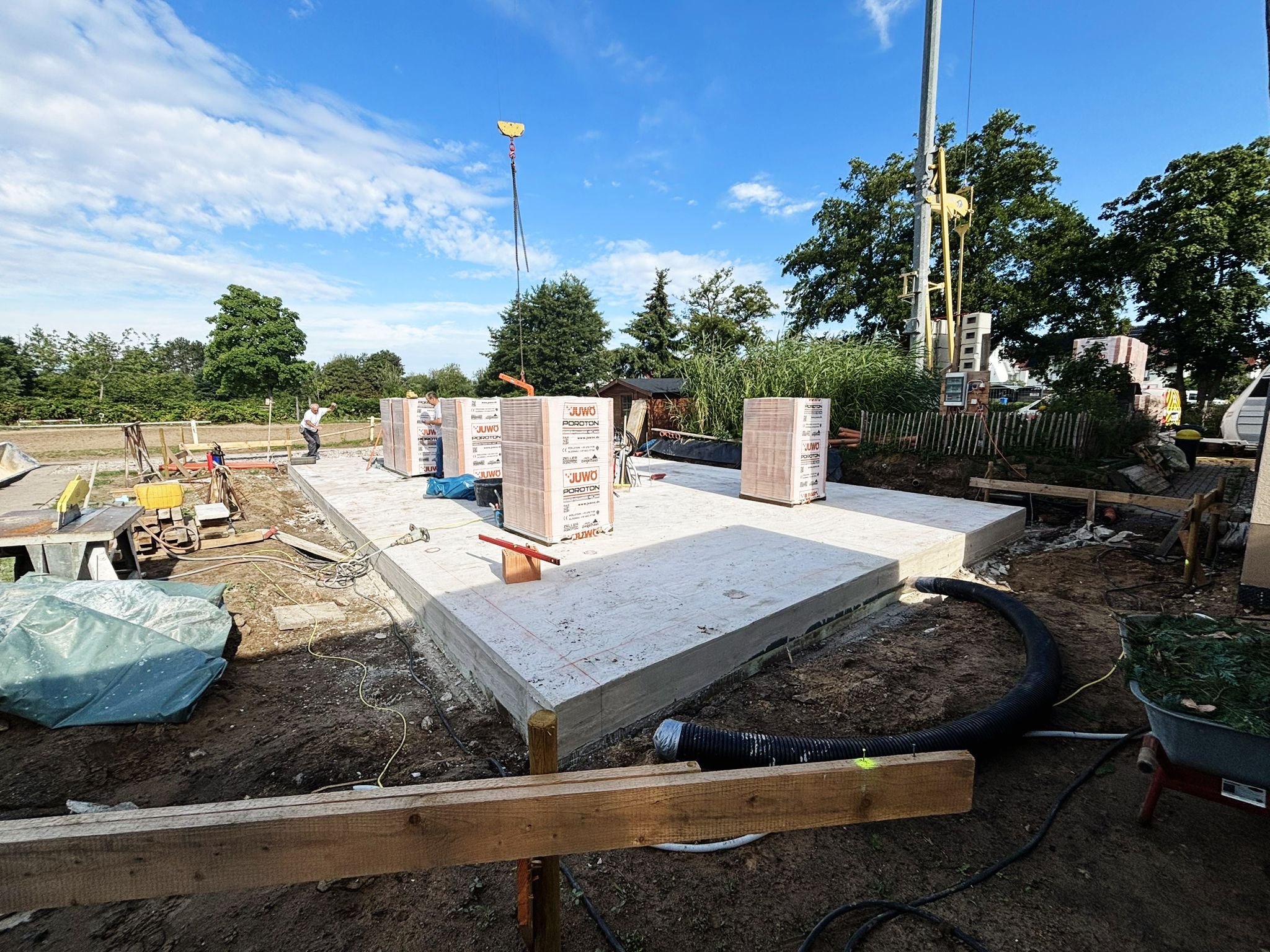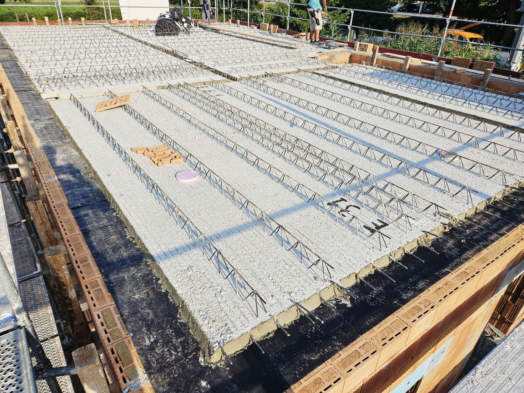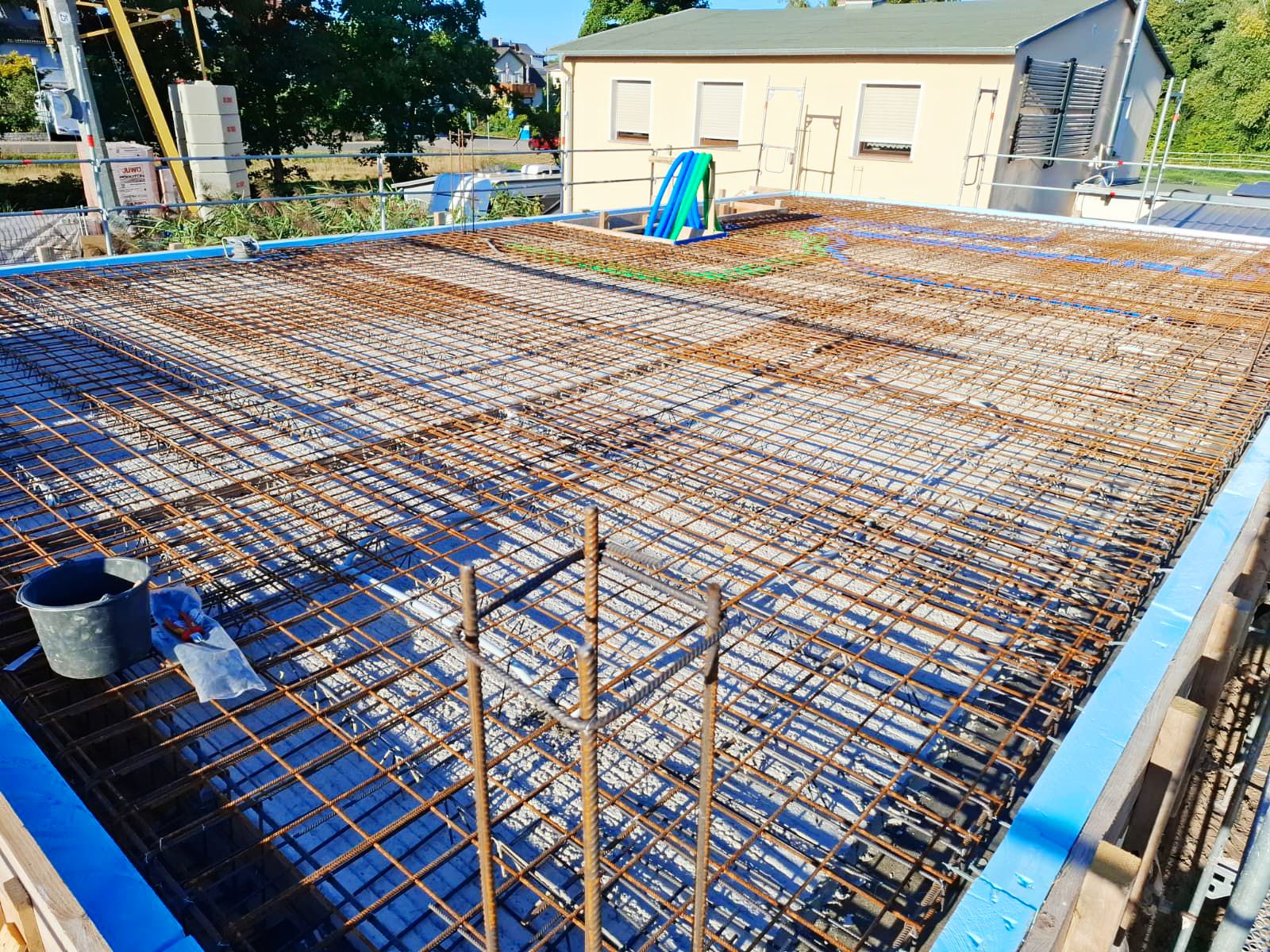 Die Herstellung einer 900 m² großen Bodenplatte beginnt mit sorgfältigen Erdarbeiten und einer stabilen Tragschicht. Anschließend werden Bewehrung und Schalung eingebracht, bevor der Beton fachgerecht gegossen und verdichtet wird. Zum Abschluss erfolgt eine Qualitätskontrolle, um Tragfähigkeit und Langlebigkeit sicherzustellen.
